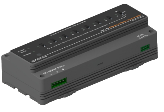 - Output: 8 channels (relays 230 Vac, 20A resistive load per channel)