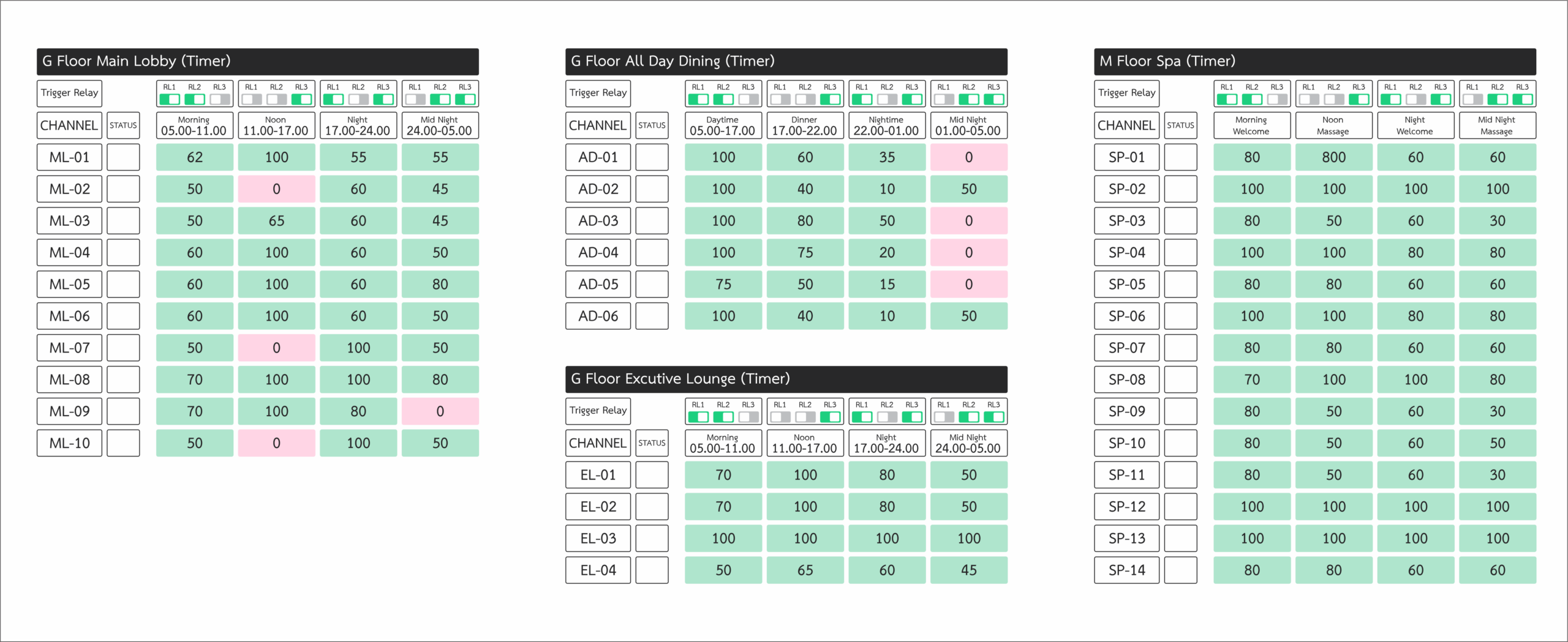 Lighting Schedules
