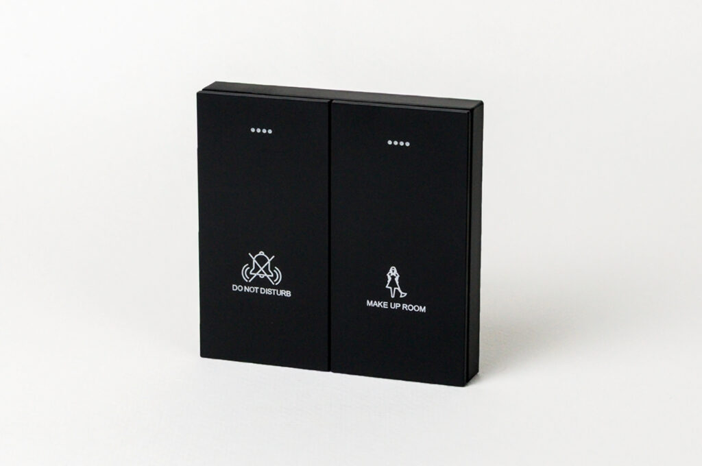 The i-SAVE Room Control Unit offers hotels a cutting-edge energy conservation solution designed to enhance guest comfort and convenience. At its core, i-SAVE is installed in a guest room. This system boasts unique and modern components that seamlessly blend with any room’s interior design. We supply a complete series of in-room components, ensuring every piece from the key box to the A/C thermostat is designed to match perfectly and create a unified aesthetic for your space.
